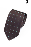 Jedwabny krawat brązowy z zielono-błękitnym mikrowzorem