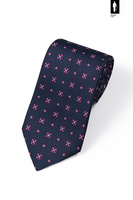 Granatowy krawat z drukowanego jedwabiu z różowym wzorem – włoski styl