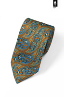 Jedwabny krawat paisley w kolorze pomarańczowo-niebieskim