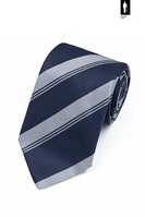 Szary krawat z mikrowzorem w niebieskim kolorze – jedwab i len, włoski styl