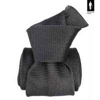 Szary krawat z mikrowzorem w niebieskim kolorze – jedwab i len, włoski styl