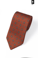 Brązowy jedwabny krawat w geometryczno-kwiatowy wzór