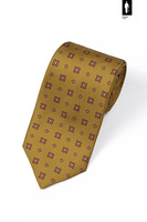 Musztardowy krawat jedwabny z czerwonym mikrowzorem
