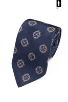 Jedwabny krawat granatowy w jasnobrązowo-biały wzór