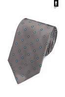 Jedwabny krawat w szarobeżowym kolorze z turkusowym mikrowzorem