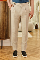 Spodnie lniane z wysokim stanem w kolorze naturalnym