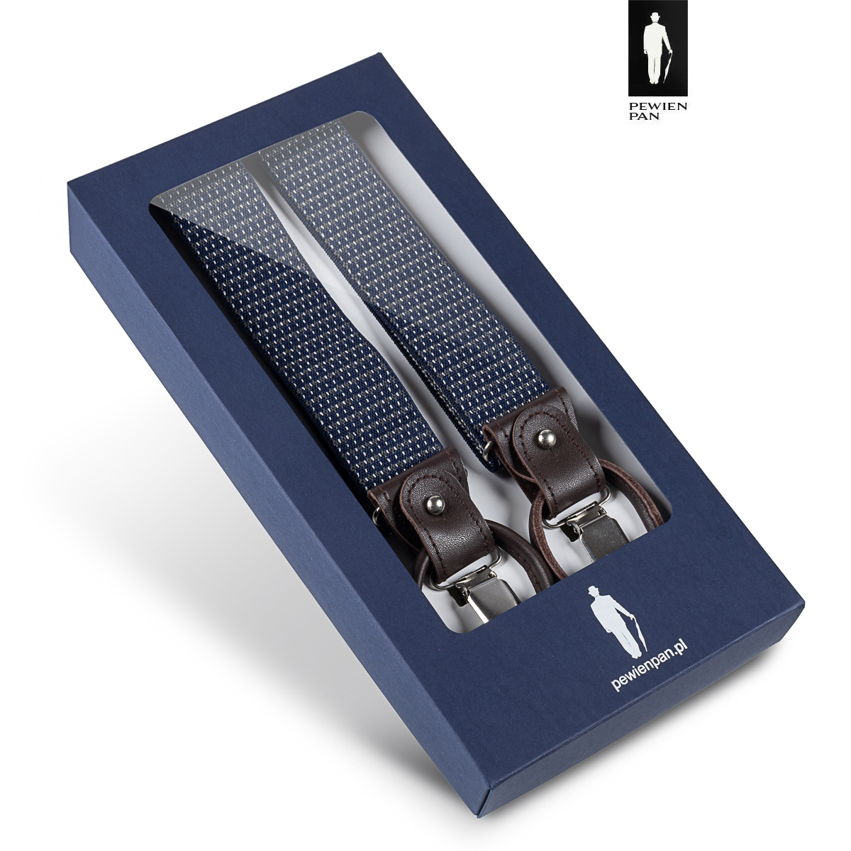 Szelki męskie granatowe w mikrowzór z zapięciem 2w1