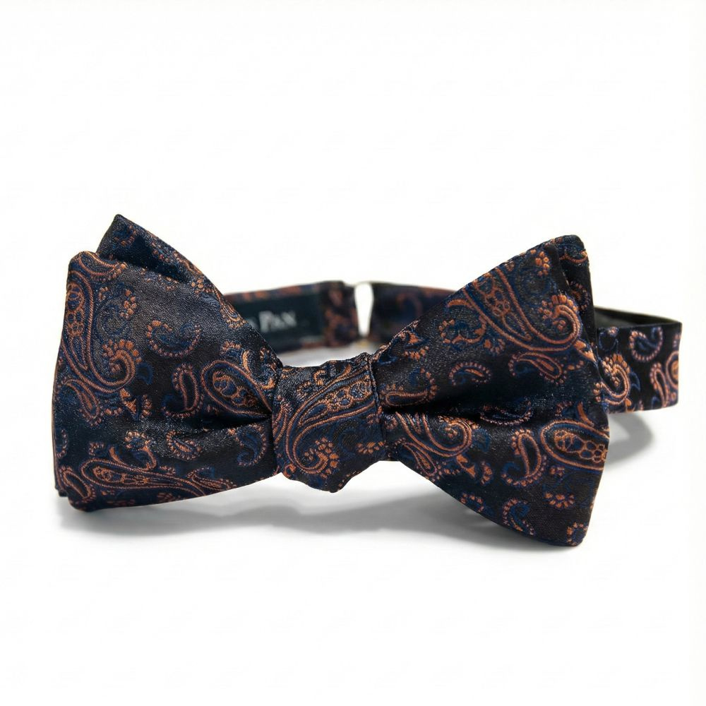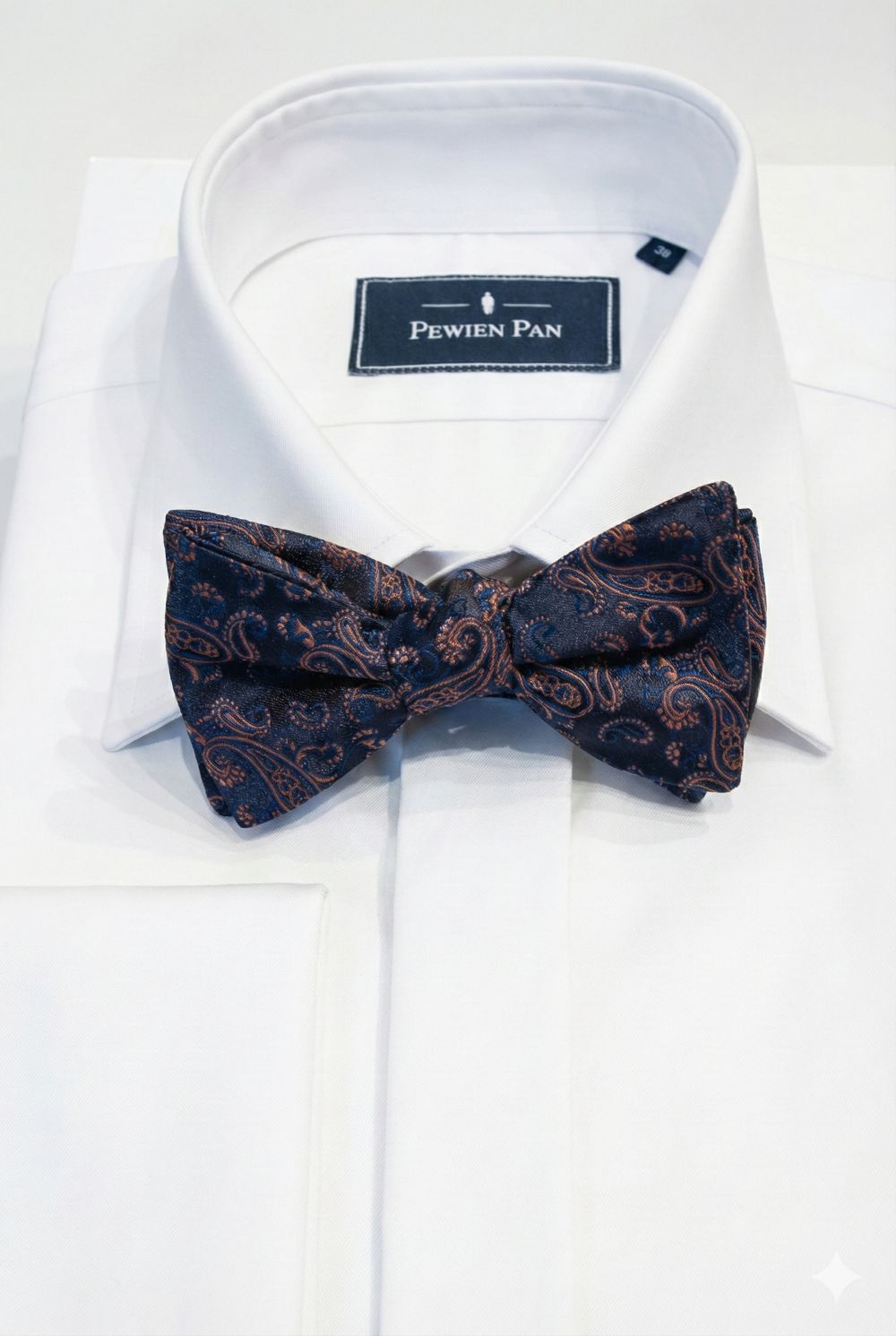 Mucha Wiązana Granatowa – Żakardowa w Miedziany Wzór Paisley