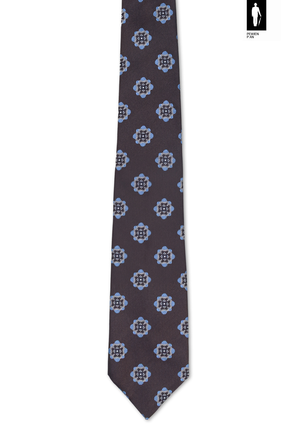 Jedwabny krawat z Como – brązowy z błękitno-białym wzorem