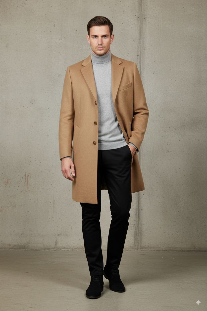 Produkt z kategorii: płaszcz męski, płaszcz męski dyplomatka, camelowy płaszcz męski