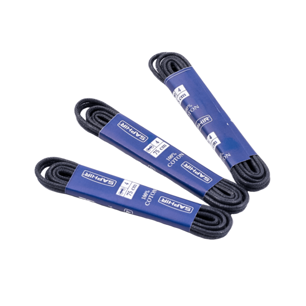 Bawełniane sznurowadła pokryte woskiem francuskiej marki Saphir BDC. Dedykowane do eleganckich butów. Charakteryzują się wysoką wytrzymałością oraz mocnym węzłem (nie rozwiązują się tak jak zwykłe sznurowadła). Okrągłe w przekroju, 1,5 mm.