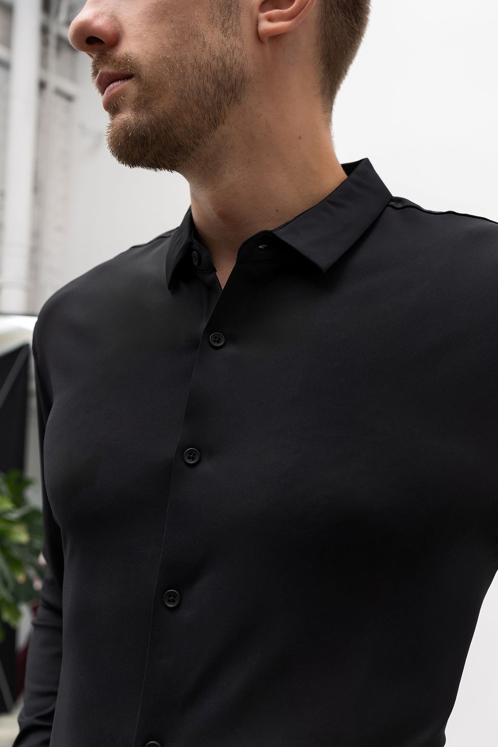 Produkt z kategorii: koszula dopasowana elastyczna, czarna koszula męska z dżerseju