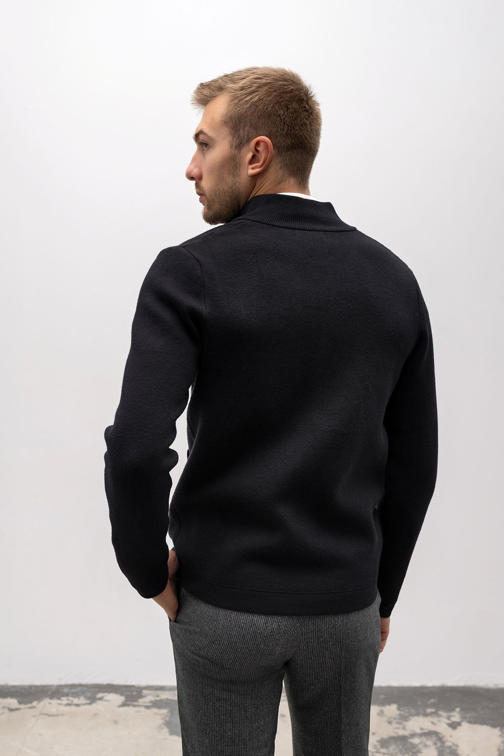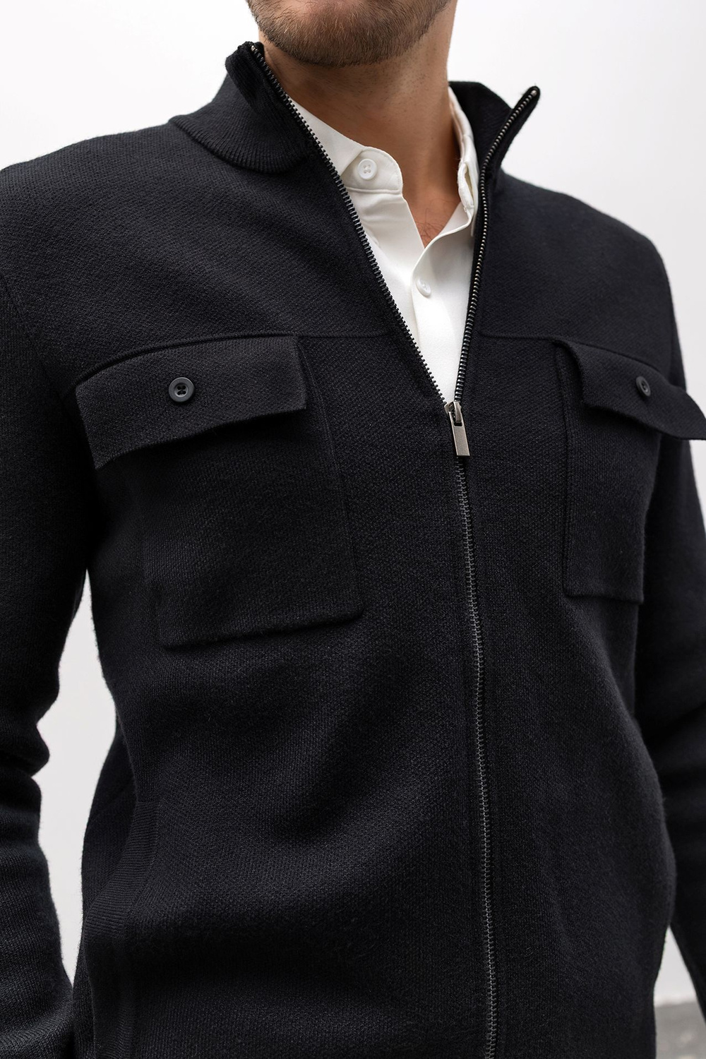 Czarny sweter męski z zamkiem – nowoczesna elegancja inspirowana stylem militarnym