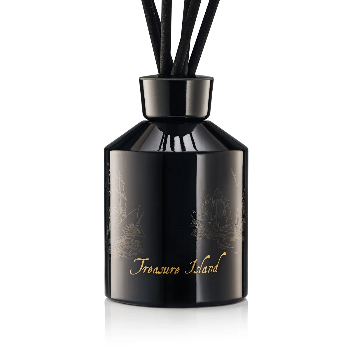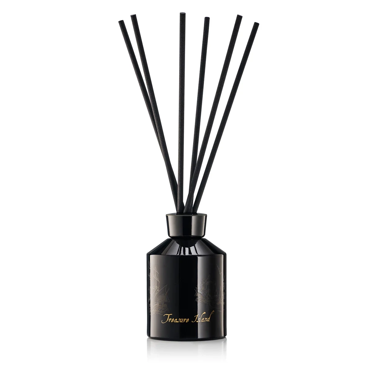 Elegancki flakon z lakierowanego, czarnego szkła z złotym logo Treasure Island i motywem żaglowców symbolizuje podróż w głąb orientu – zarówno dosłowną, jak i duchową. Czarne patyczki i złote detale tworzą wyrafinowaną kompozycję dla wymagających estetów.
