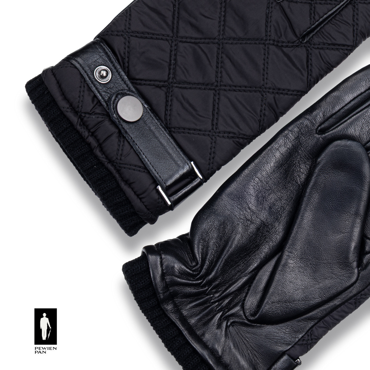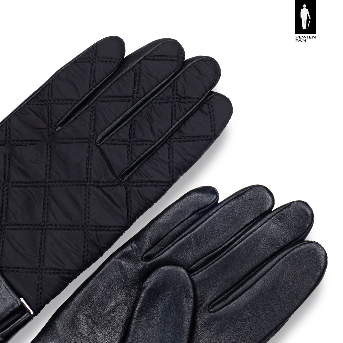 Wierzchnia część została wykonana z pikowanego materiału, a wnętrze dłoni – z wysokiej jakości skóry naturalnej. Dzięki temu rękawiczki są eleganckie, trwałe i komfortowe w noszeniu.