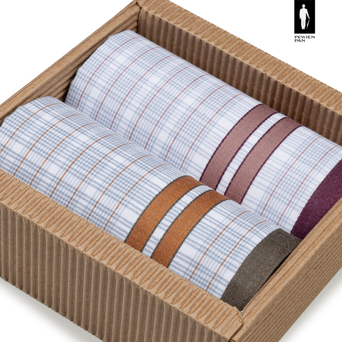 To ponadczasowy zestaw idealny zarówno do codziennego noszenia, jak i jako drobny prezent. Uniwersalna, subtelna kratka przywodzi na myśl klasyczne chusteczki dawnych dżentelmenów, a nowoczesne kolorowe akcenty dodają im świeżości.