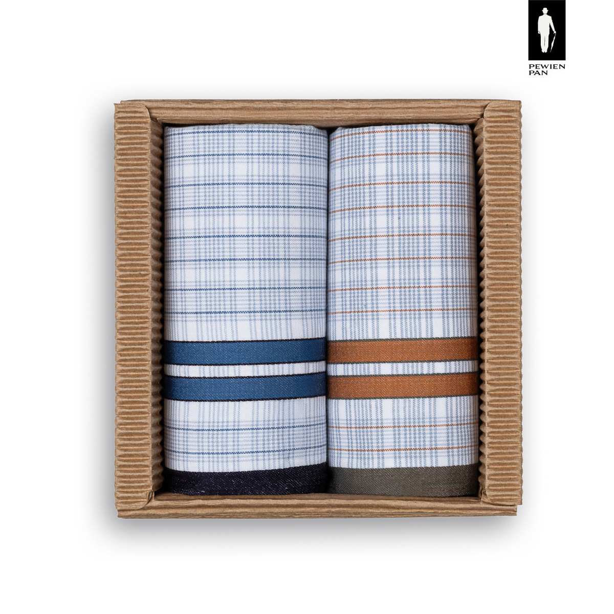 - Zestaw dwóch eleganckich chusteczek męskich w kratkę z kontrastowymi paskami.