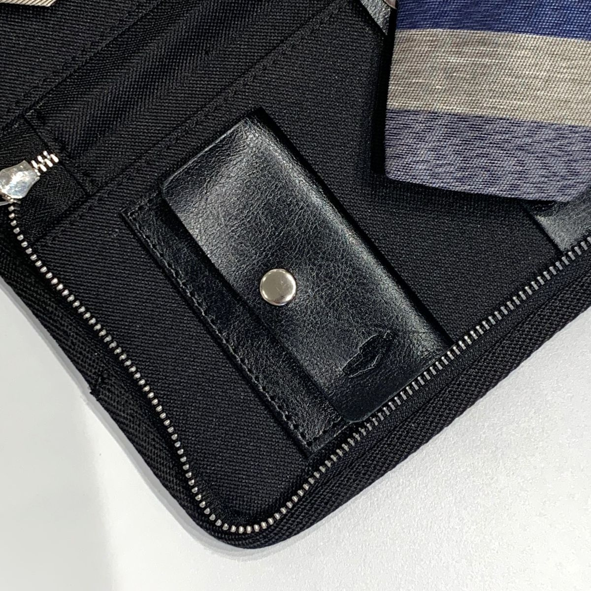 System stabilizacji: Wewnętrzne skórzane paski zapinane na solidne zatrzaski utrzymują krawaty na miejscu, zapobiegając ich zsuwaniu się i powstawaniu zagnieceń.